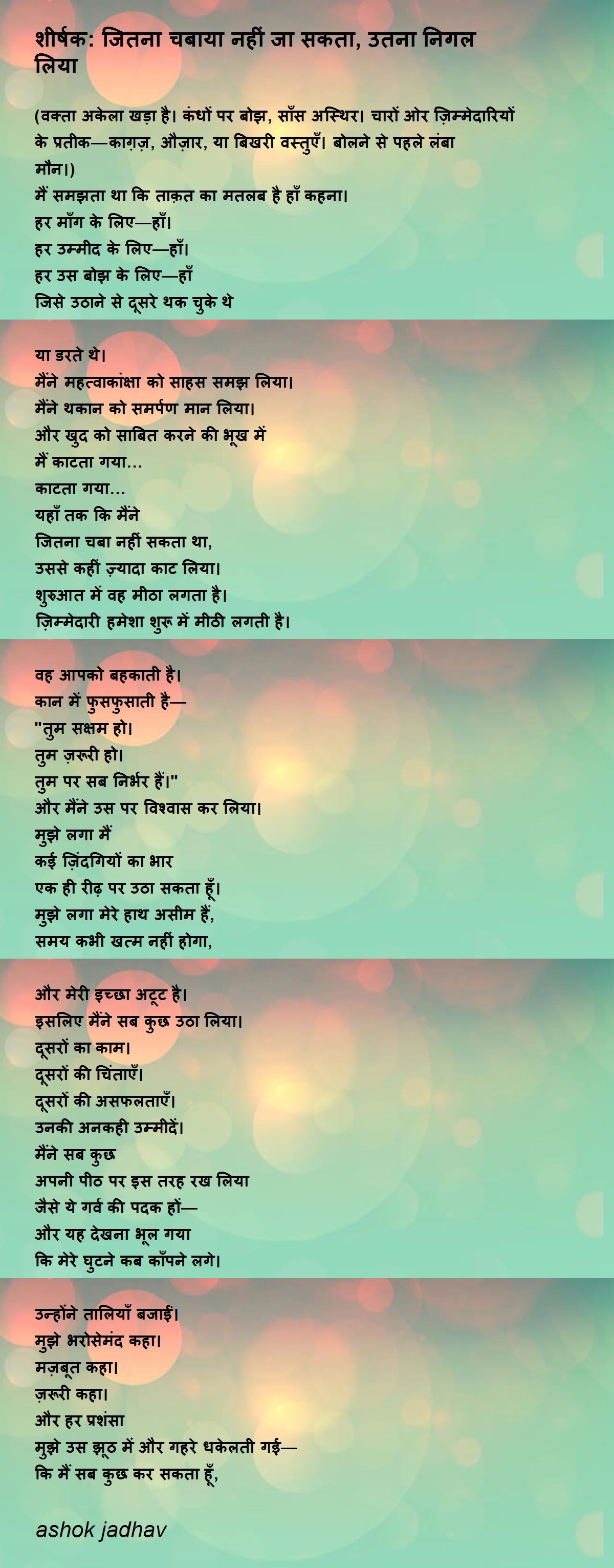 शीर्षक: जितना चबाया नहीं जा सकता, उतना निगल लिया Poem by ashok jadhav