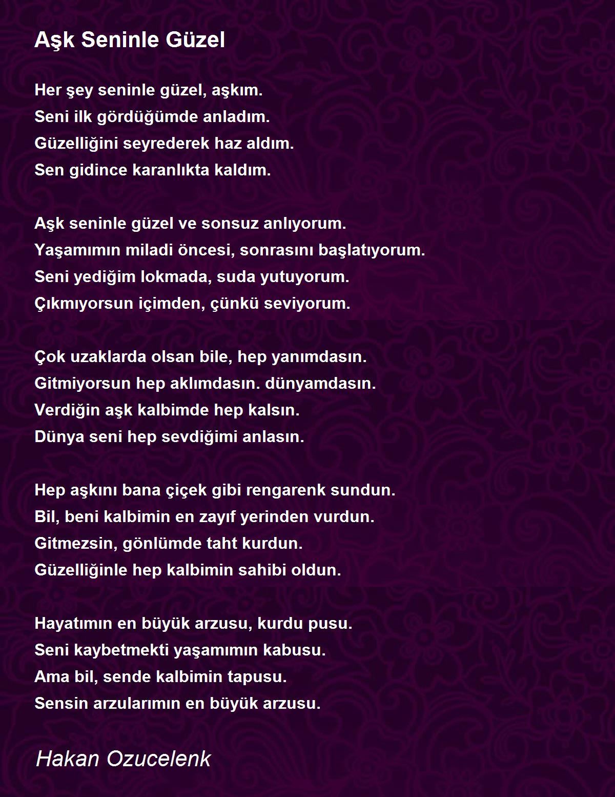 Aşk seninle güzel ve sonsuz anlıyorum.