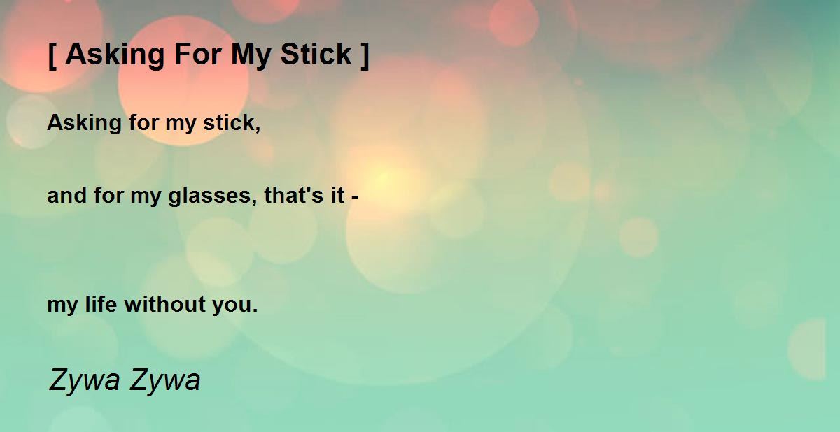 Asking for my stick, and for my glasses, that's it - my life without you.