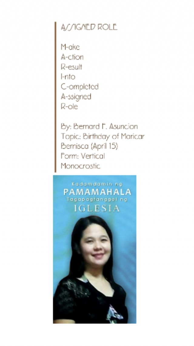 Topic: Birthday of Maricar Bernisca (April 15)
