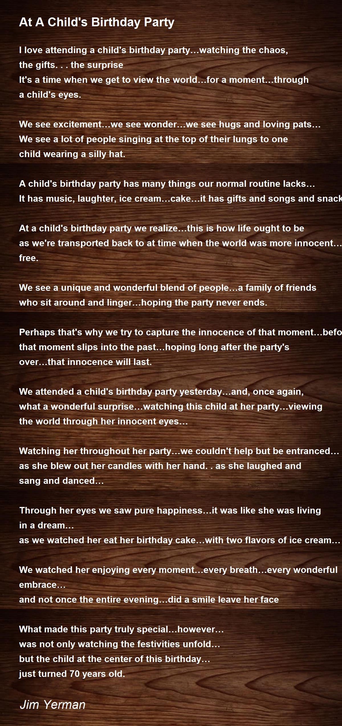 We attended a child's birthday party yesterday…and, once again, what a wonderful surprise…watching this child at her party…viewing the world through her innocent eyes…