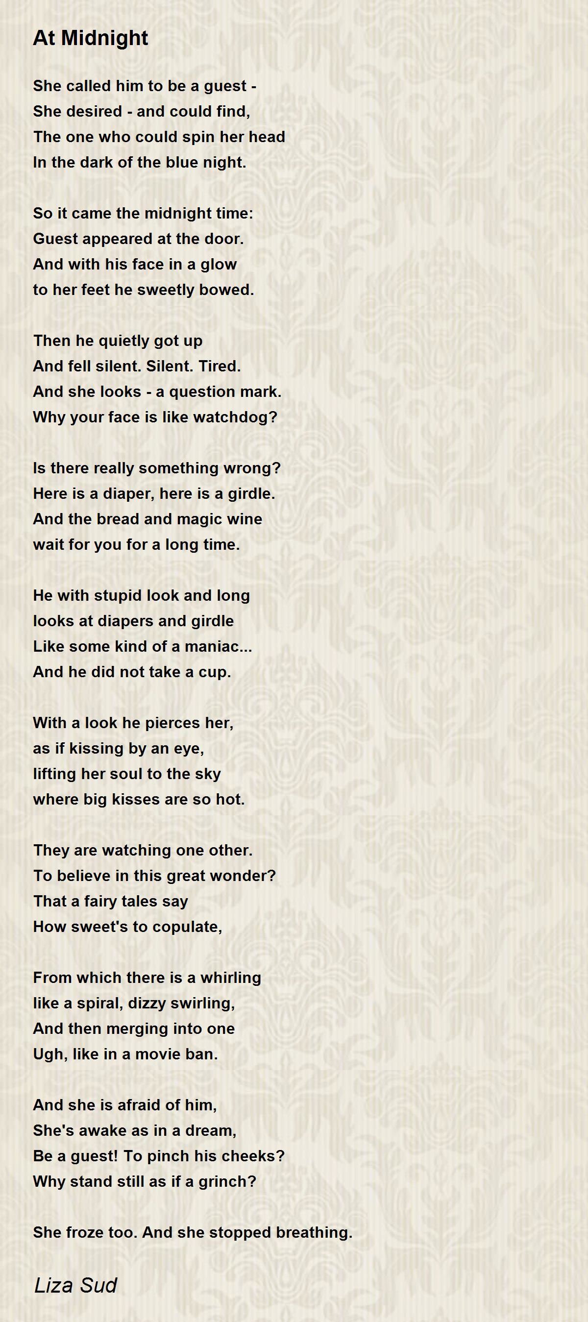 Hi Liza, Pretty long poem. Too unlike of Liza. Loved the way you constructed the story, without every slipping into. Even when you say, “How sweet it is to copulate “, it looks as if you are not speaking of. Loved reading, With a look he pierces her, as if kissing by an eye, lifting her soul to the sky where big kisses are so hot.