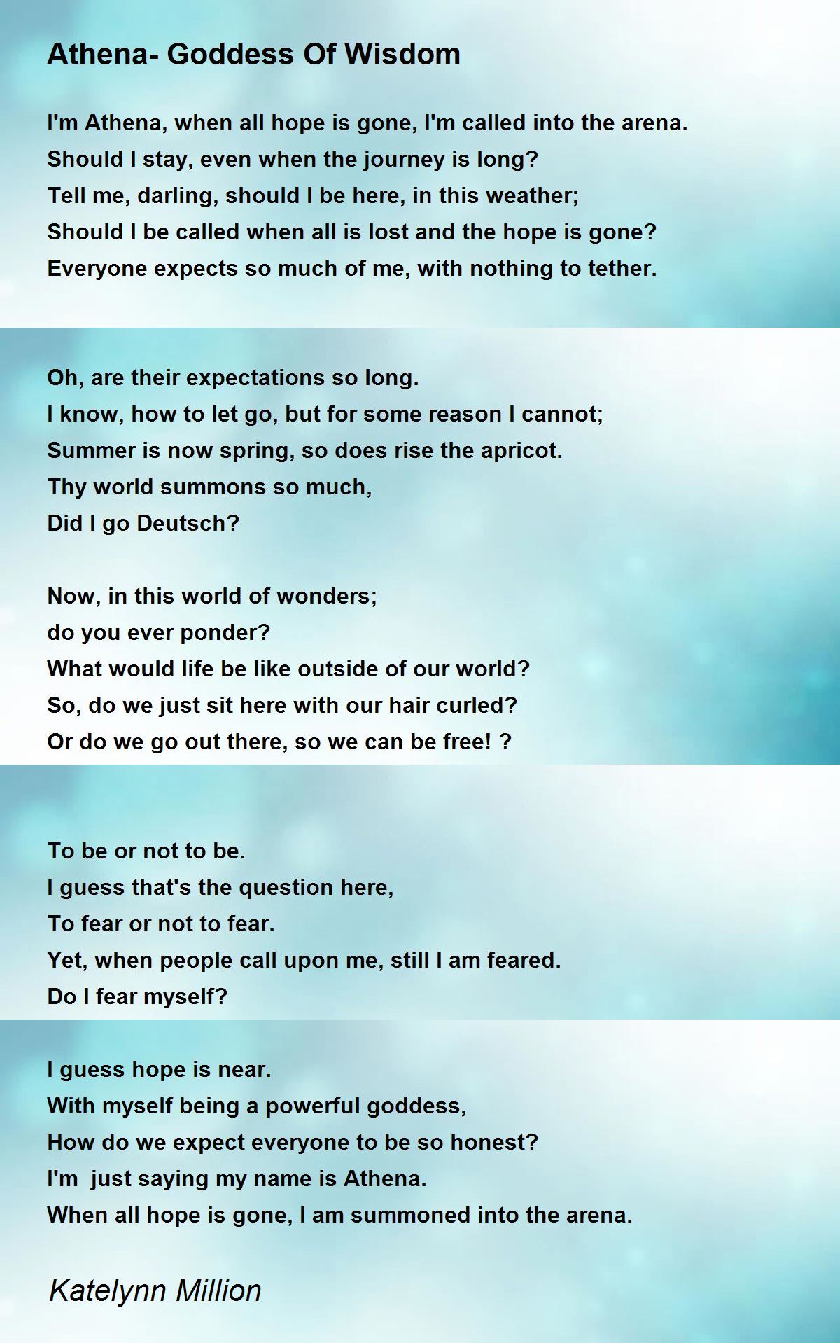 I'm Athena, when all hope is gone, I'm called into the arena.