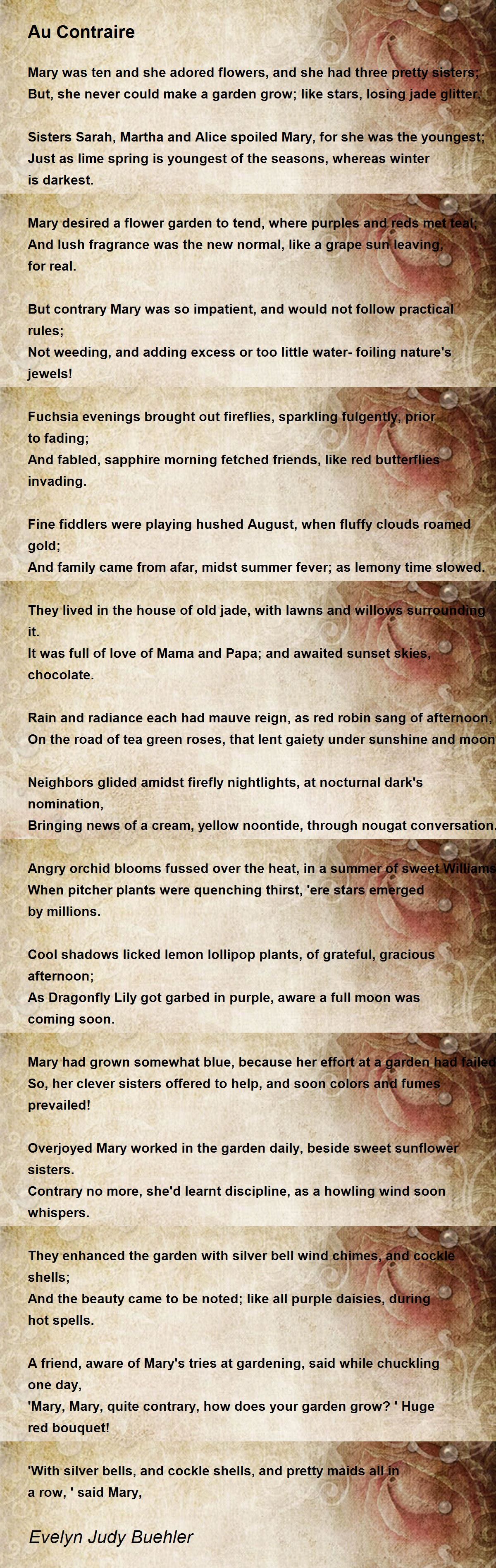 Mary had grown somewhat blue, because her effort at a garden had failed,