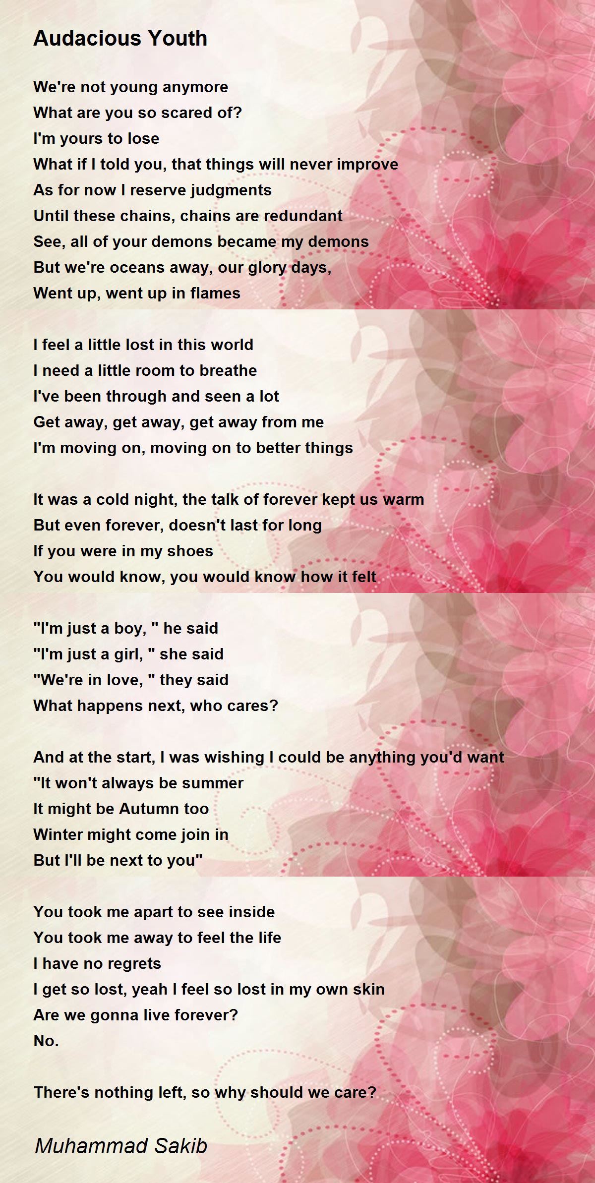 last line is nicely crafted as Audacious Youth's voice- There's nothing left, so why should we care?