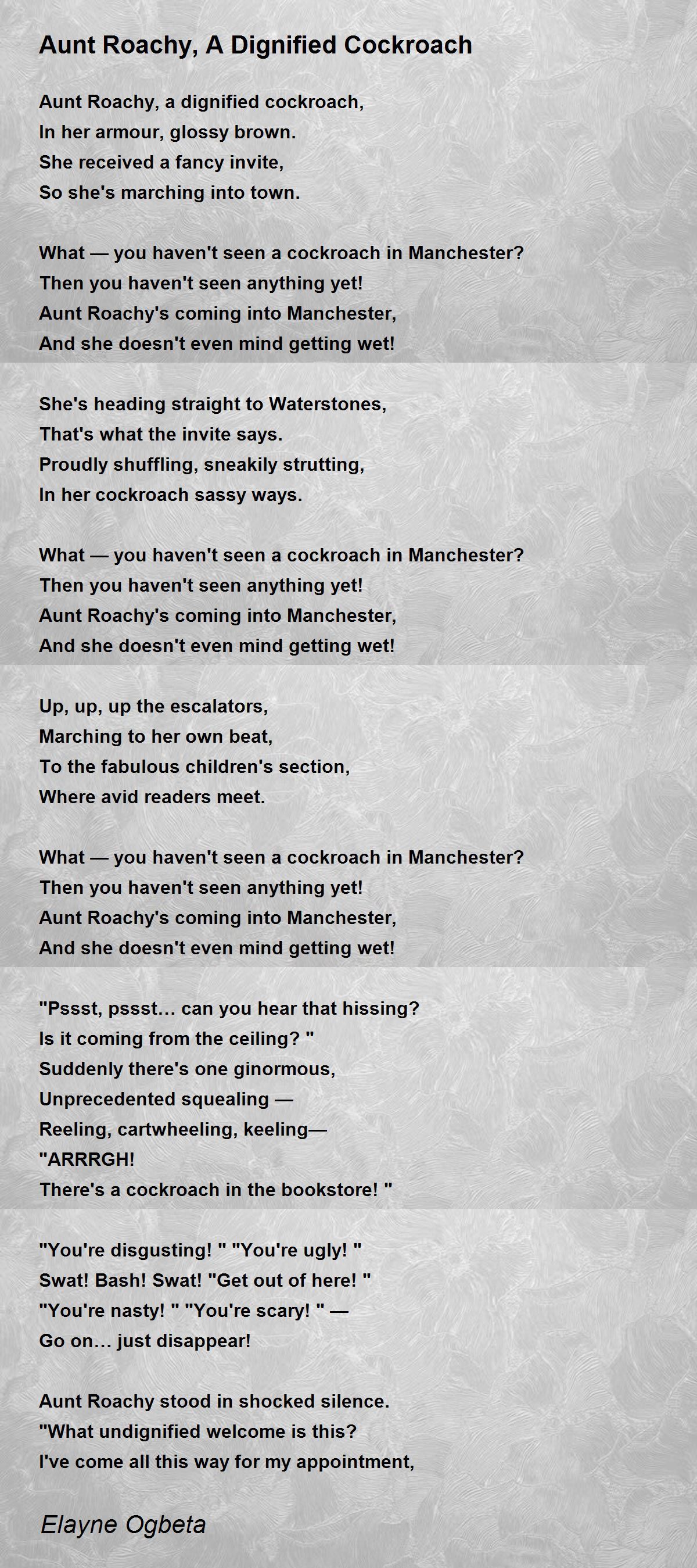Aunt Roachy, a dignified cockroach,