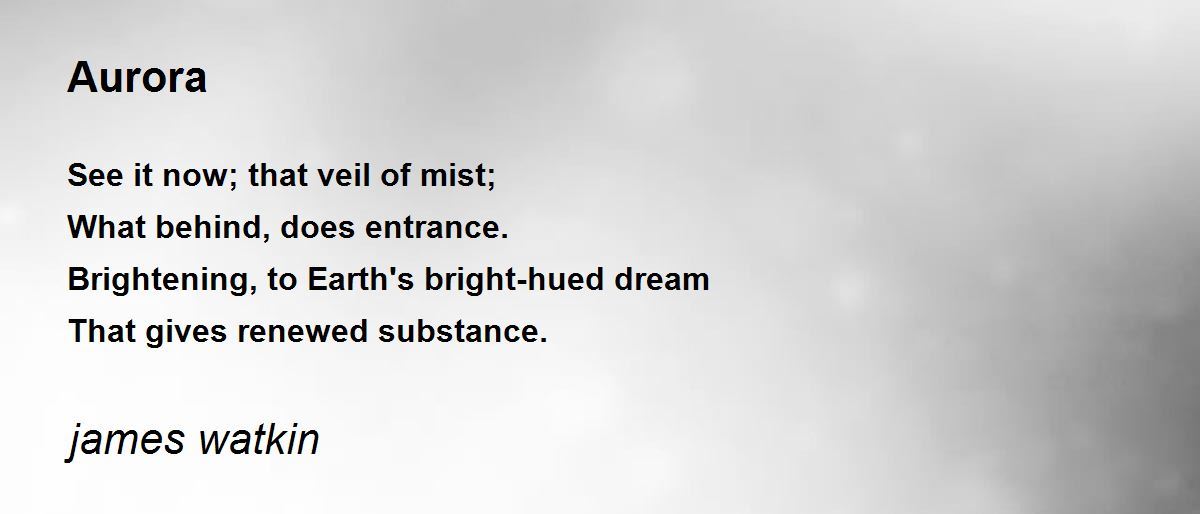 See it now; that veil of mist; What behind, does entrance.Brightening, to Earth's bright-hued dreamThat gives renewed substance.