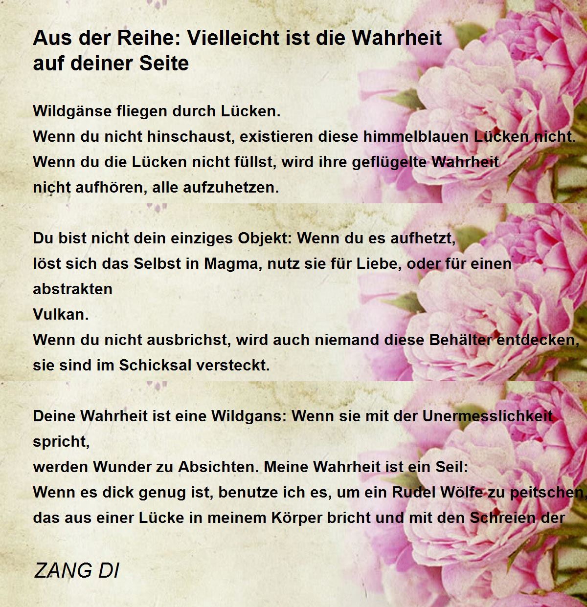 Deine Wahrheit ist eine Wildgans: Wenn sie mit der Unermesslichkeit spricht,
