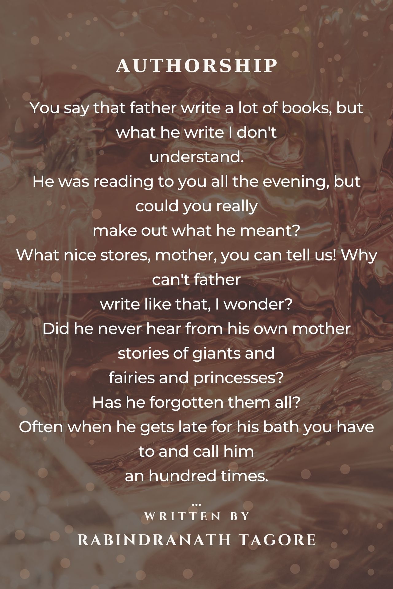 The relationship with child and father is a beautiful thing to imagine. when it relates that the father being one of the world's great poets and writings aplenty and takes lot of times in creativity of poems the child's attention makes him pleasure. Very nice poem.