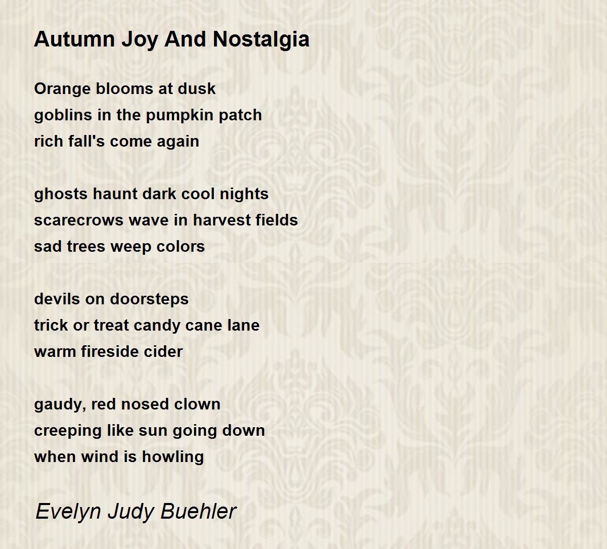 A fascinating poem with wonderful imegery! ghosts haunt dark cool nights/scarecrows wave in harvest fields...loved these two lines the most. Top score!