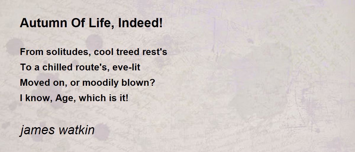 From solitudes, cool treed rest'sTo a chilled route's, eve-litMoved on, or moodily blown? I know, Age, which is it!