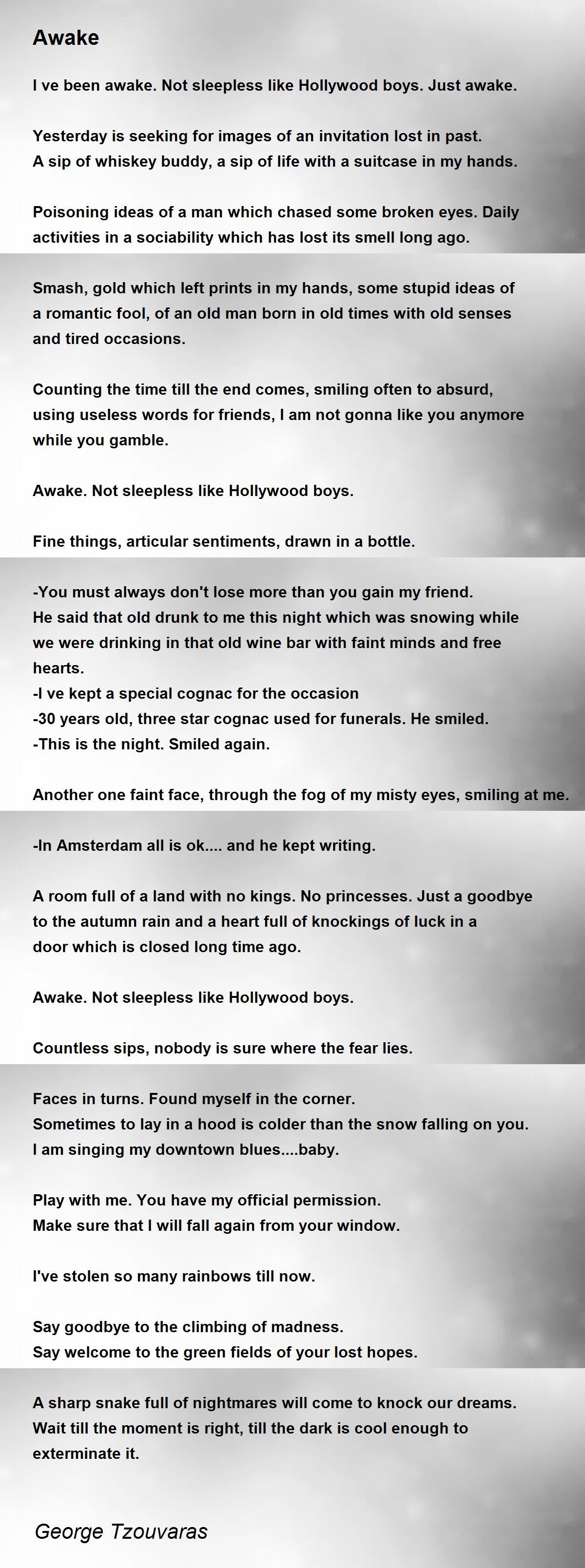 I ve been awake. Not sleepless like Hollywood boys. Just awake.