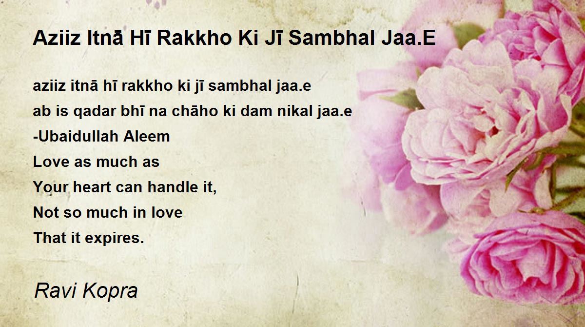 aziiz itnā hī rakkho ki jī sambhal jaa.e