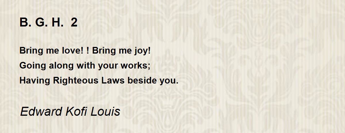 Bring me love! ! Bring me joy! Going along with your works; Having Righteous Laws beside you.