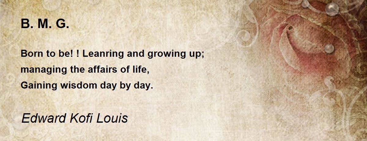 Born to be! ! Leanring and growing up; managing the affairs of life, Gaining wisdom day by day.