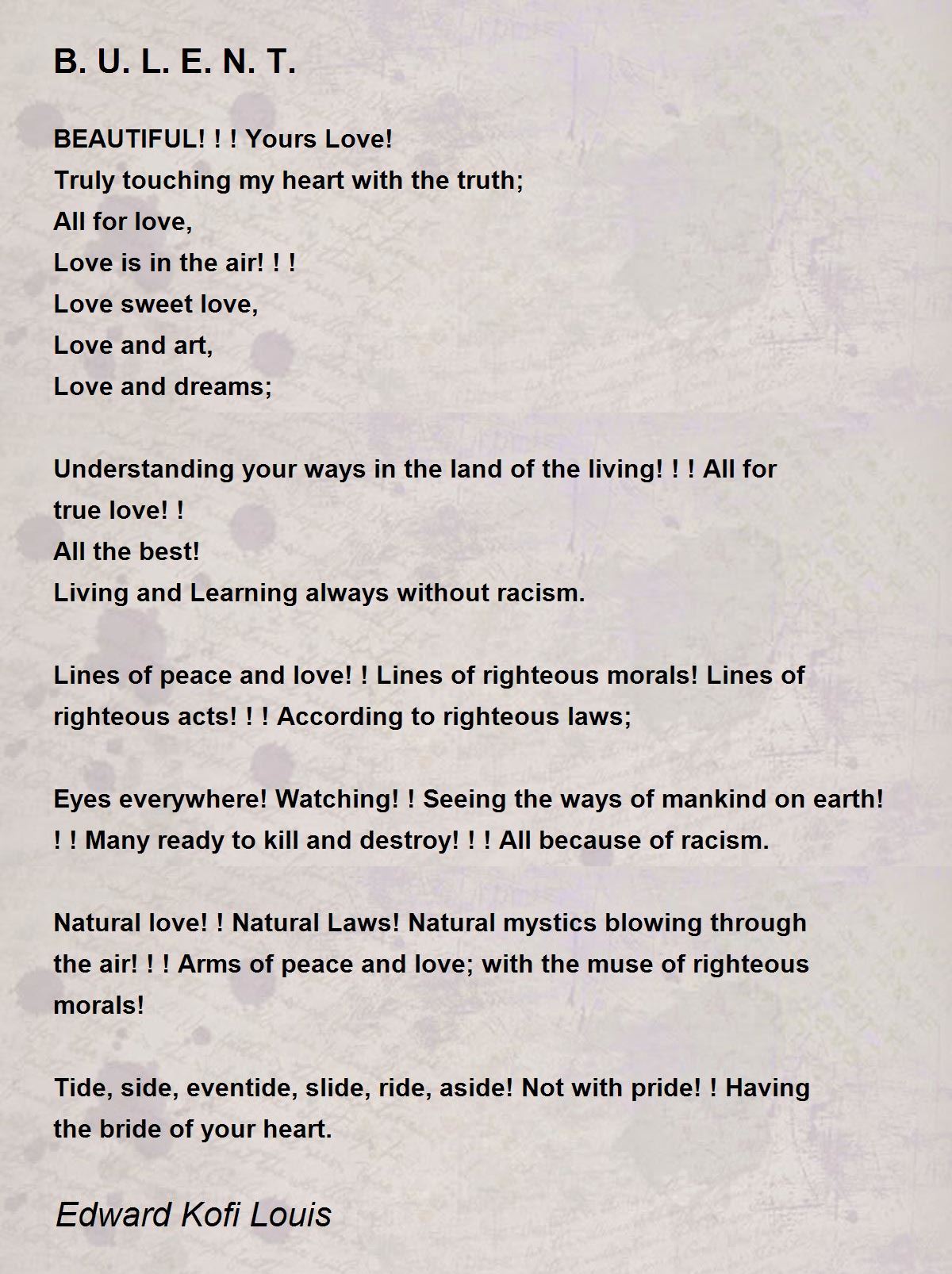 Natural love! ! Natural Laws! Natural mystics blowing through the air! ! ! Arms of peace and love; with the muse of righteous morals!