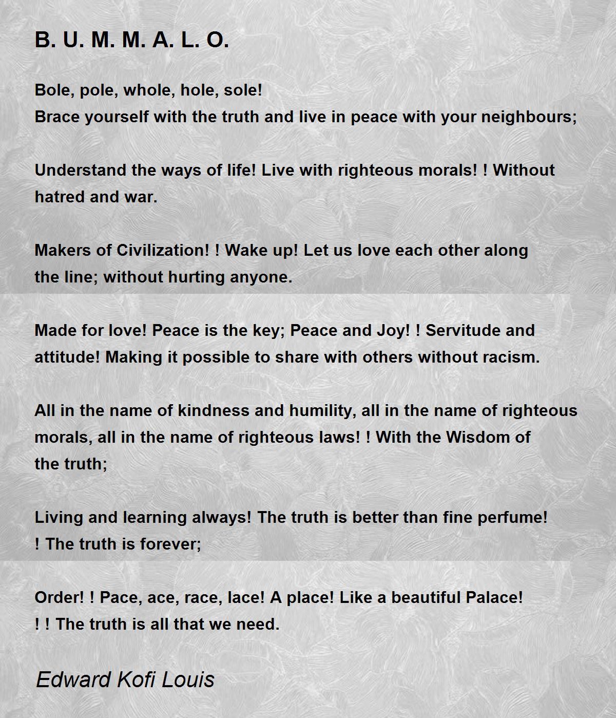 All in the name of kindness and humility, all in the name of righteous morals, all in the name of righteous laws! ! With the Wisdom of the truth;
