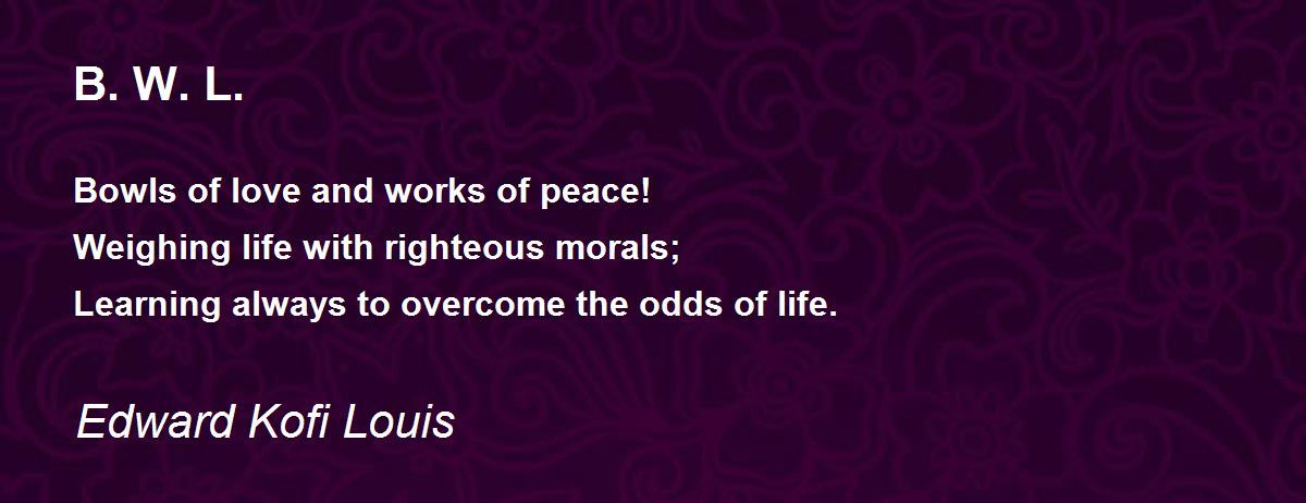 Bowls of love and works of peace! Weighing life with righteous morals; Learning always to overcome the odds of life.