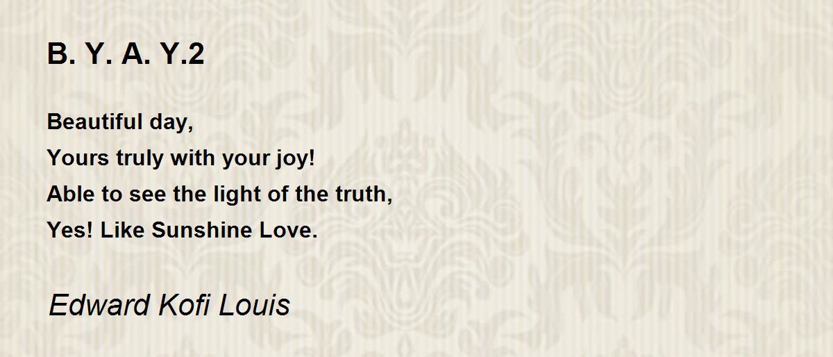 Beautiful day, Yours truly with your joy! Able to see the light of the truth, Yes! Like Sunshine Love.