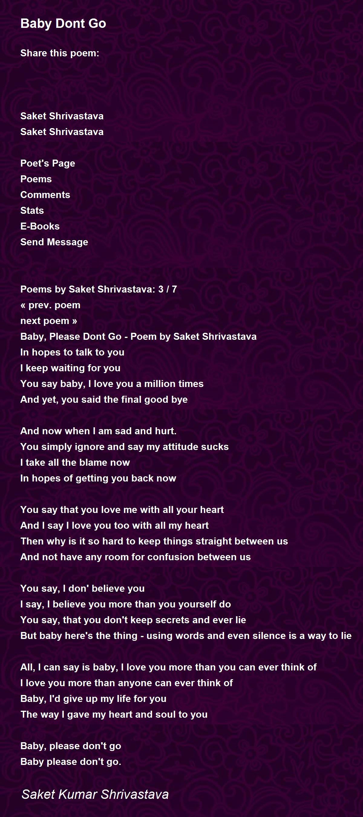 Baby, Please Dont Go - Poem by Saket Shrivastava