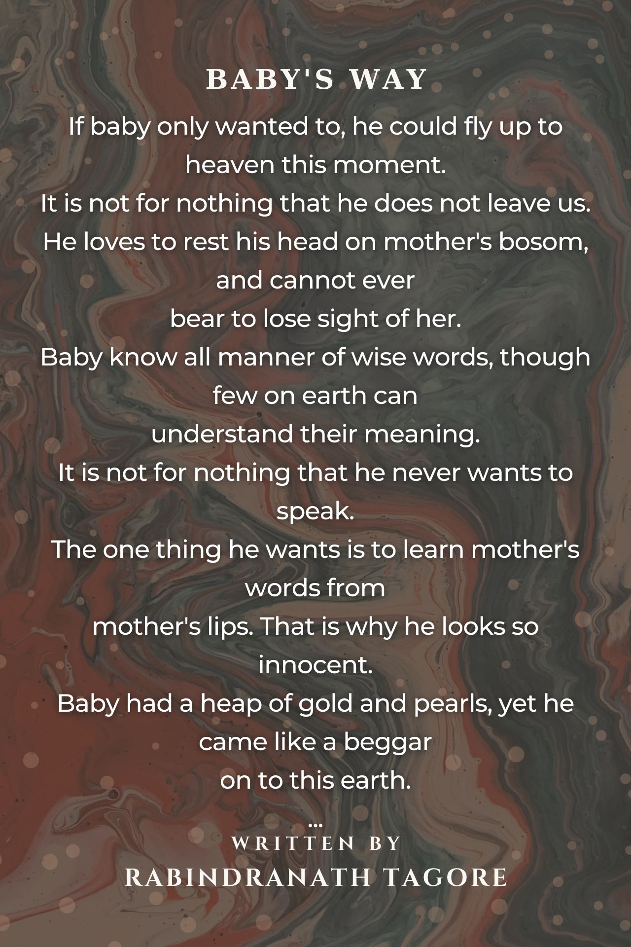 2) and also be able to love someone else. True mesmerizes me, Baby and the mother represents closeness, intimacy and basic love,5 Stars full Score and myriad more for this loveliest poem by our great thinker Rabindranath Tagore