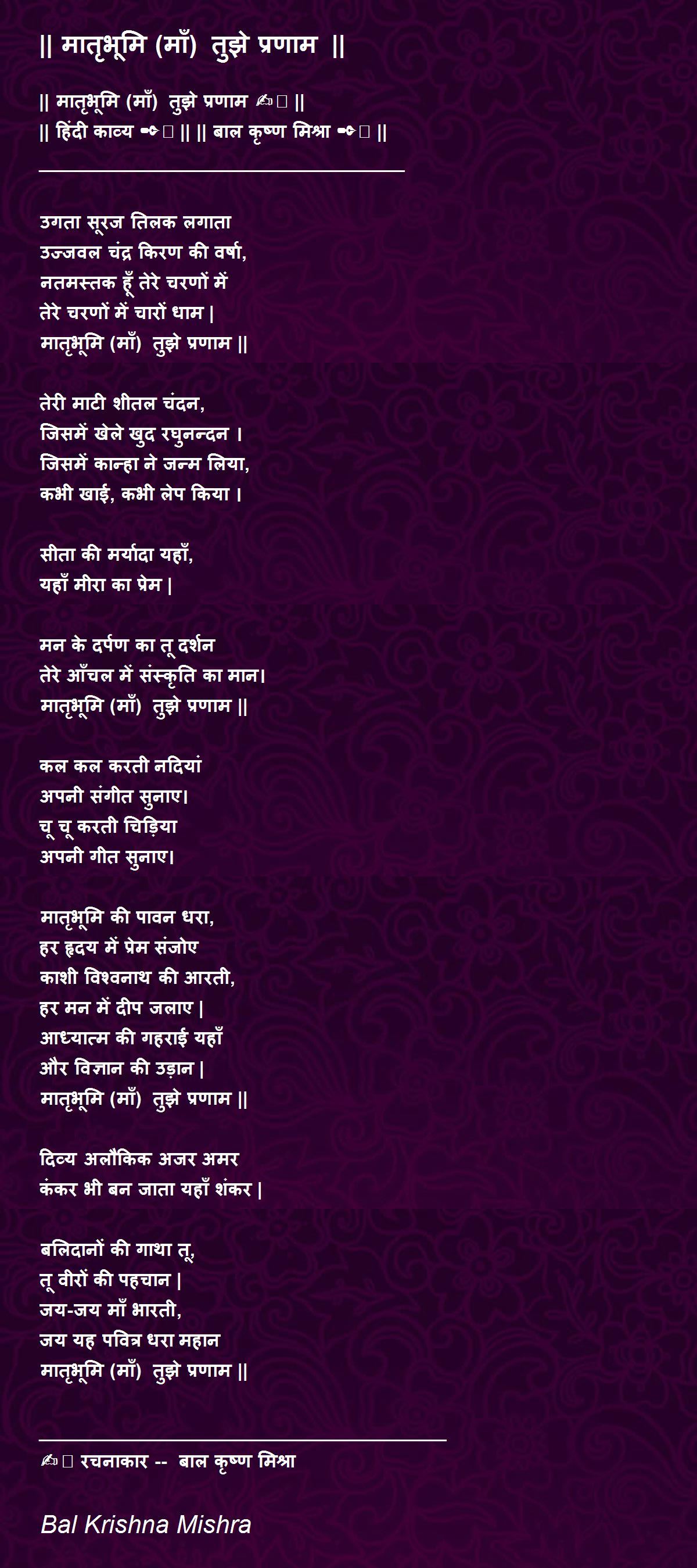 || मातृभूमि (माँ) तुझे प्रणाम ✍️ ||