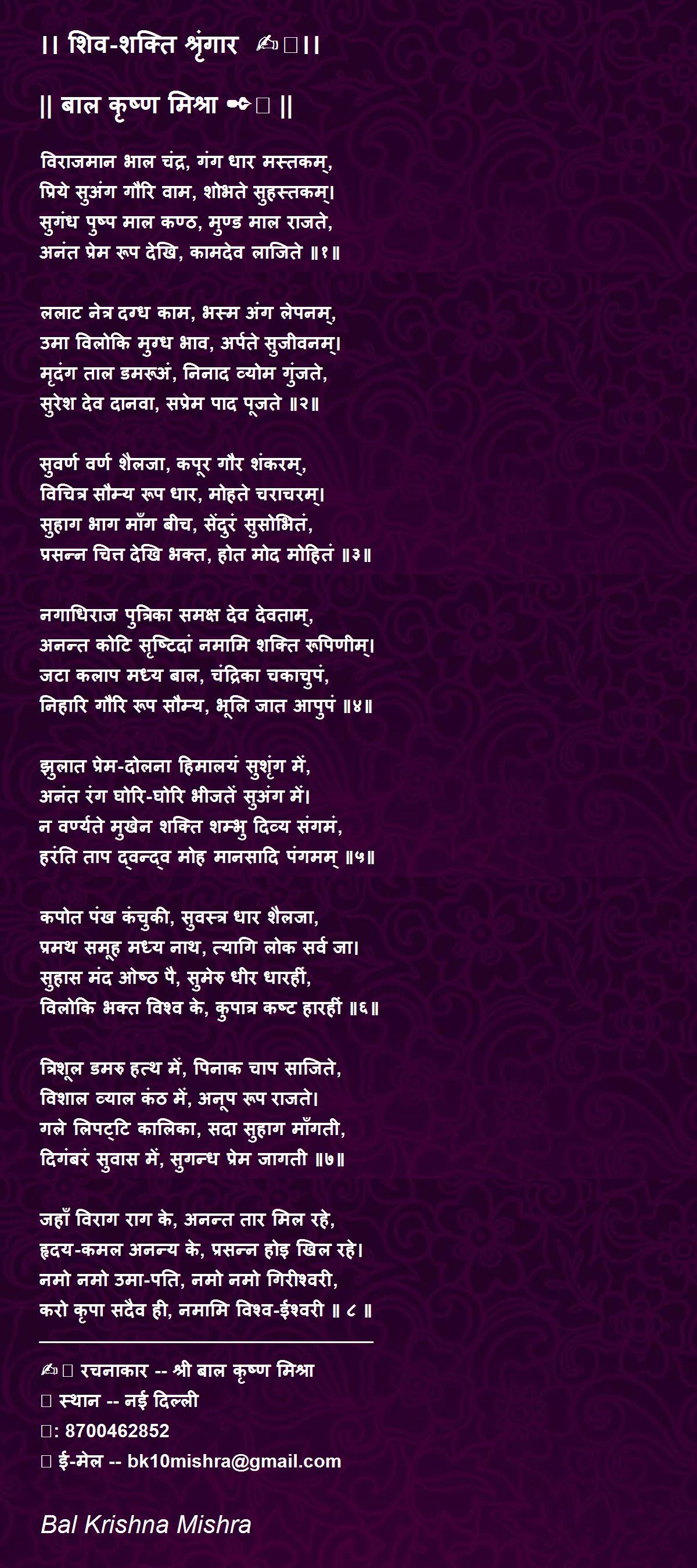न वर्ण्यते मुखेन शक्ति शम्भु दिव्य संगमं,