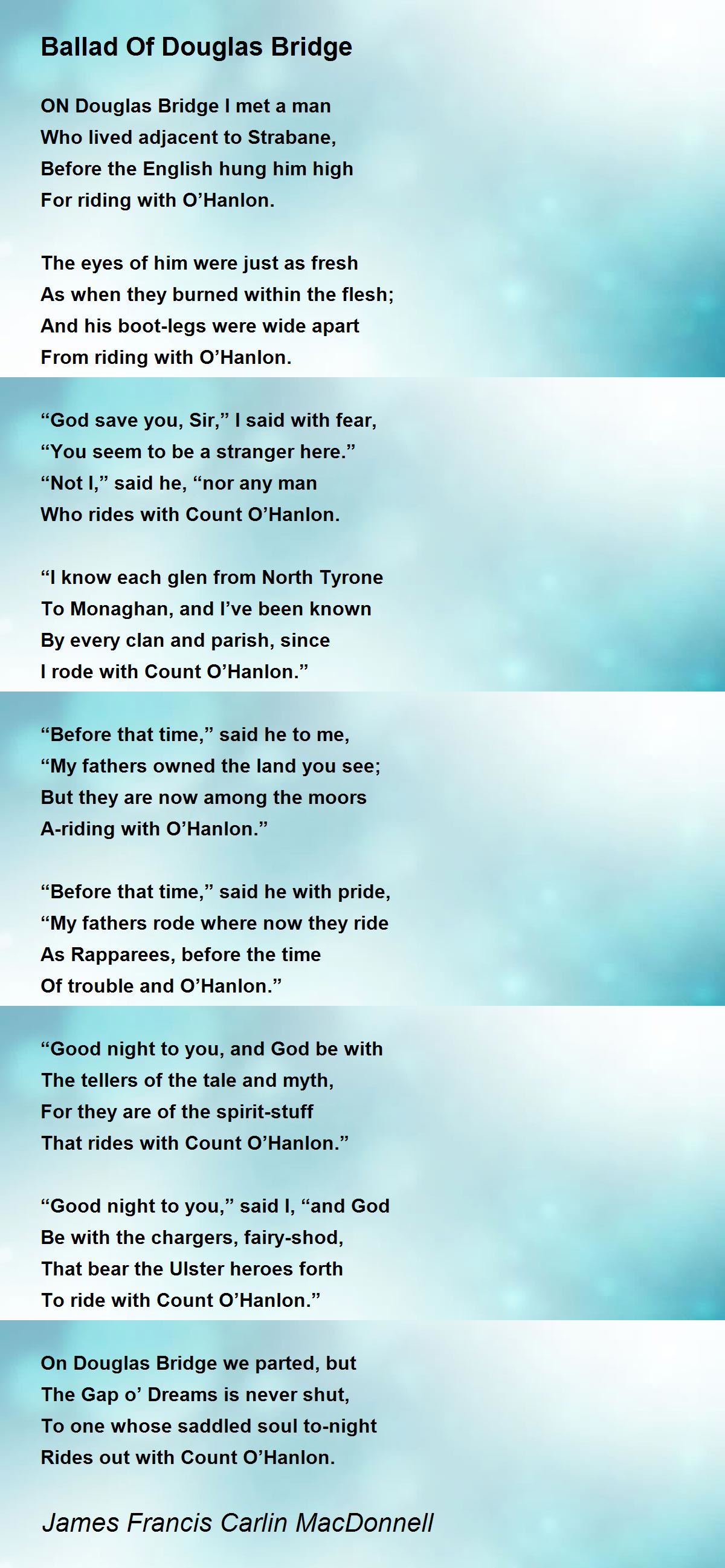 ON Douglas Bridge I met a man