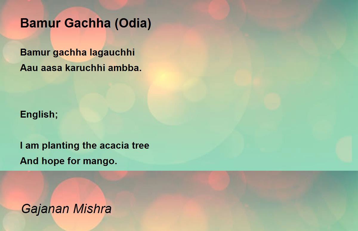 Bamur gachha lagauchhi Aau aasa karuchhi ambba. English; I am planting the acacia tree And hope for mango.