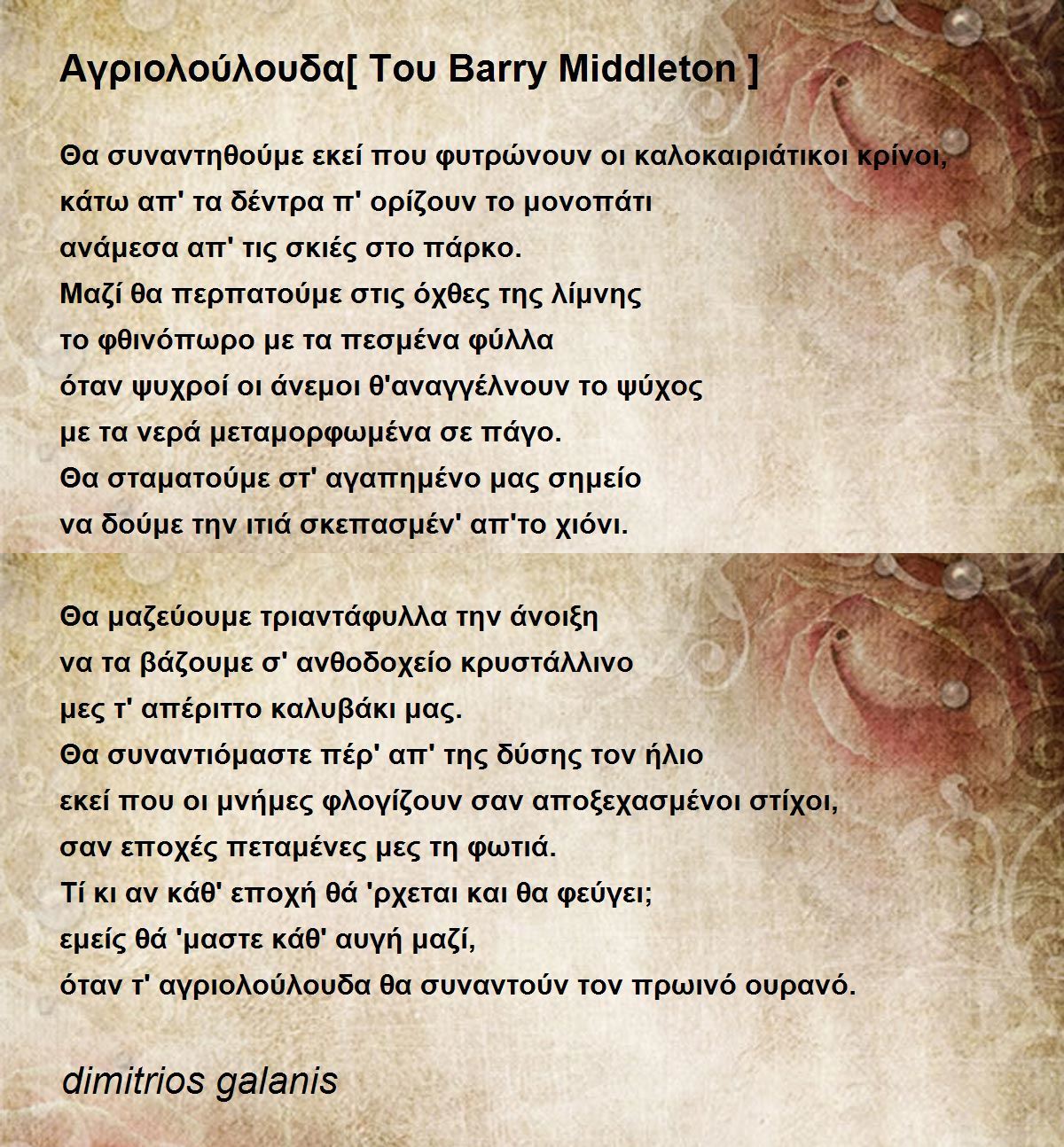 I liked it so much that immediatelly I translated it and submitted. It gave me the impression of the eternity.Our life and deeds of it, its sentiments and thoughts through its verses, I had the feeling, become eternal.Kudos, dear Barry.
