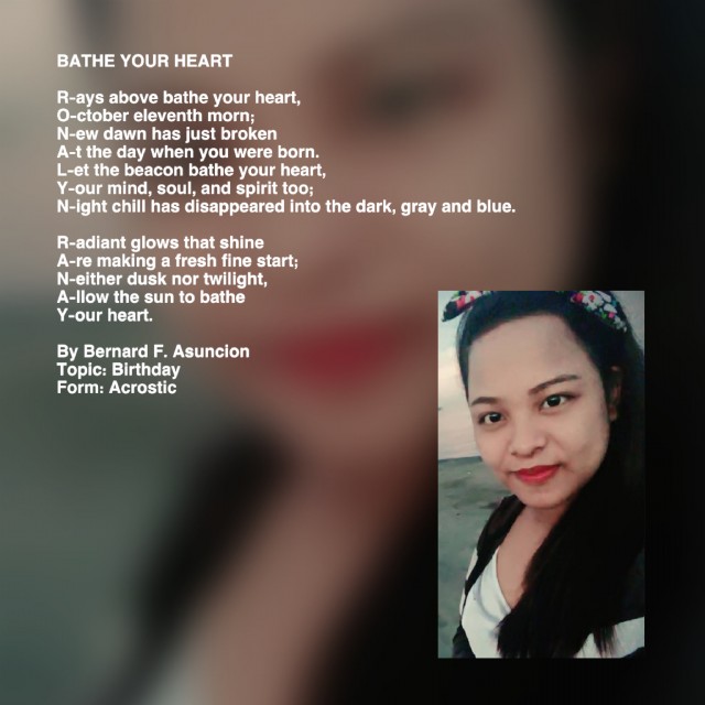 Acrostic song Is difficult to write. But the poet has chosen the birth day to write it with ease. Excellent.