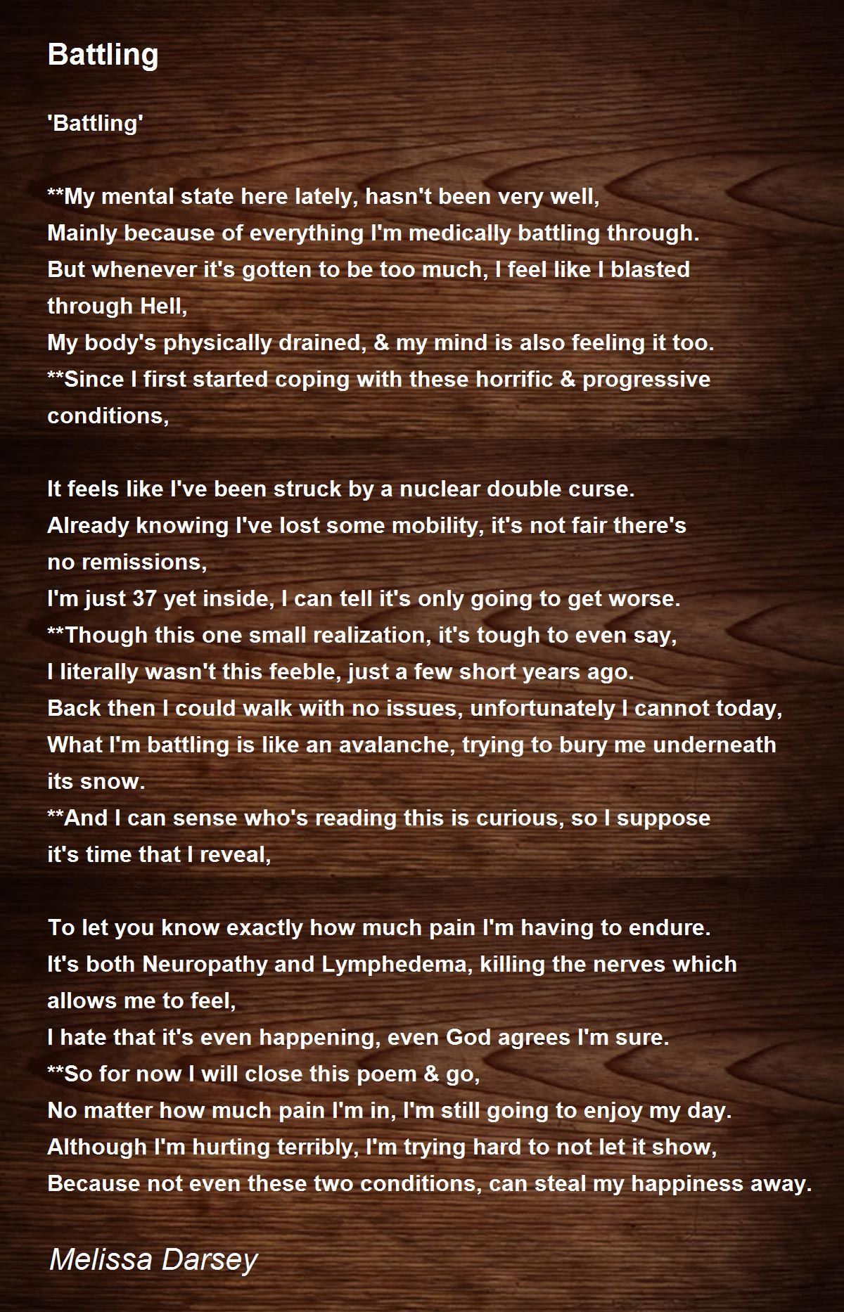 What I'm battling is like an avalanche, trying to bury me underneath its snow.