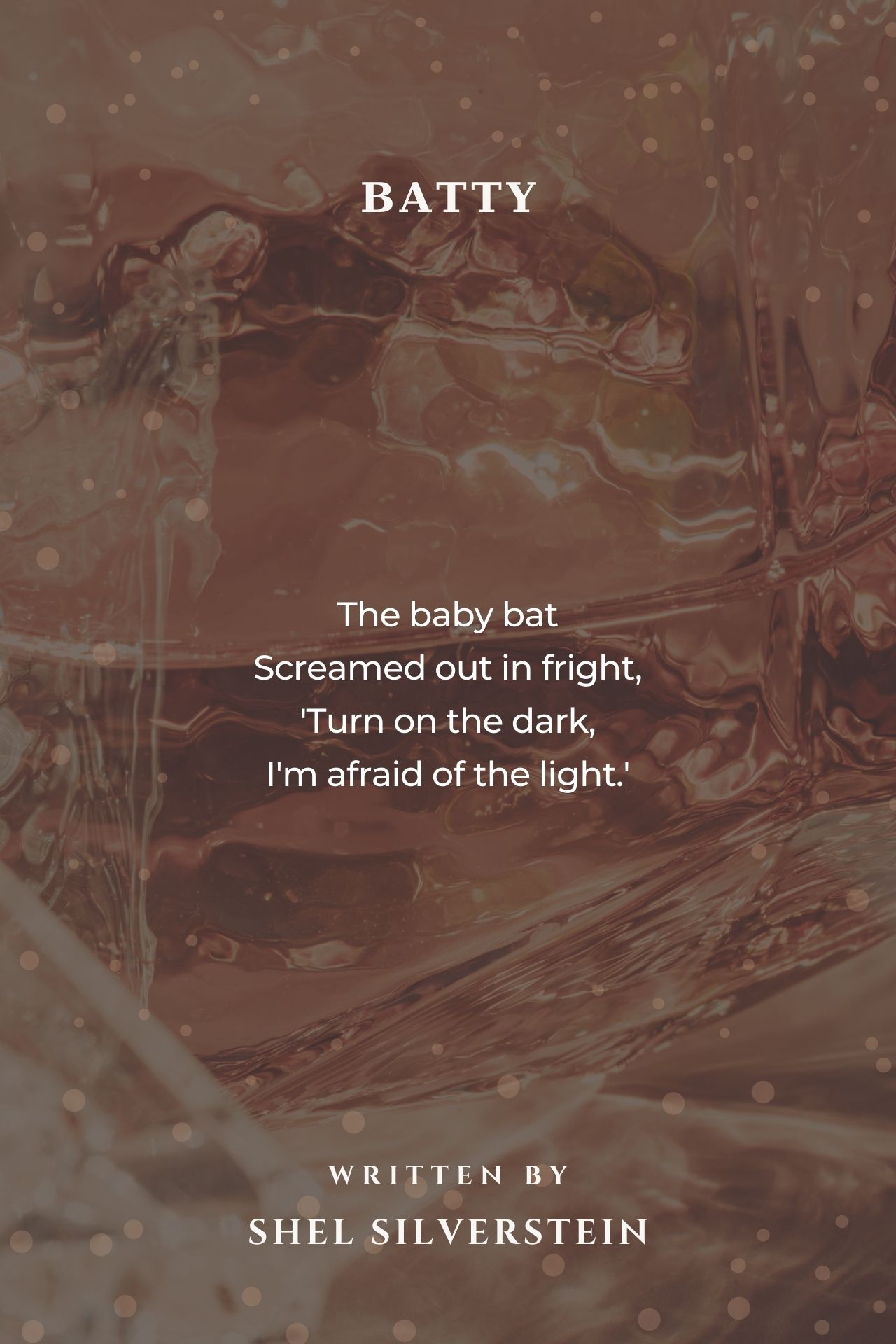 I love this poem. Silverstein has a way of compressing a world of meaning into a 'cute' little story about a bat.