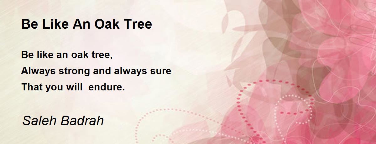 Be like an oak tree, Always strong and always sure That you will endure.