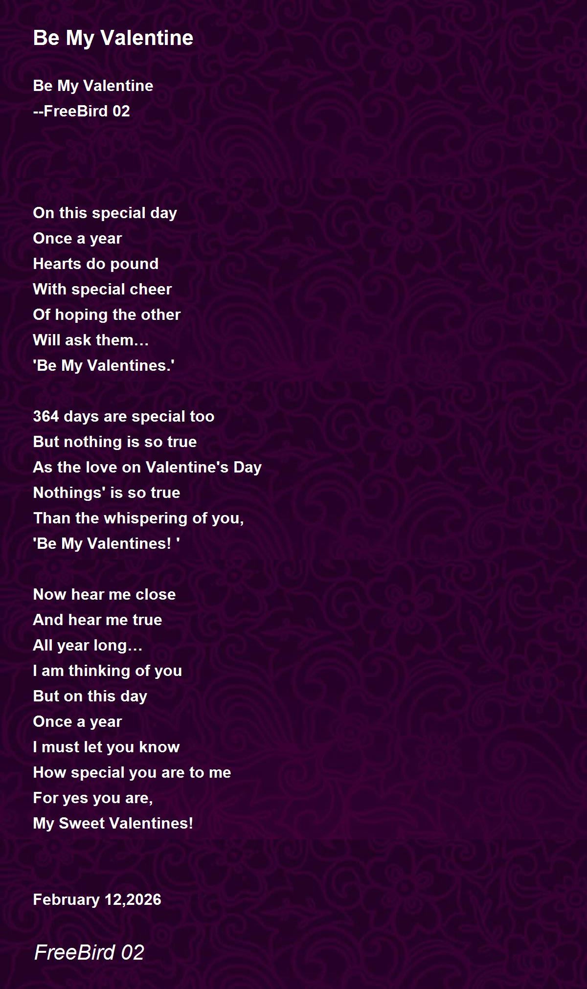 Be My Valentine Poem by FreeBird 02