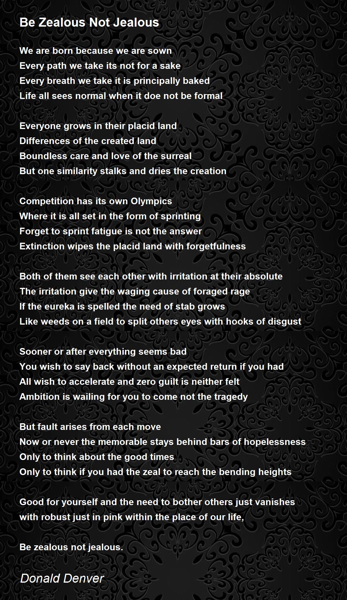 Be zealous not jealous.