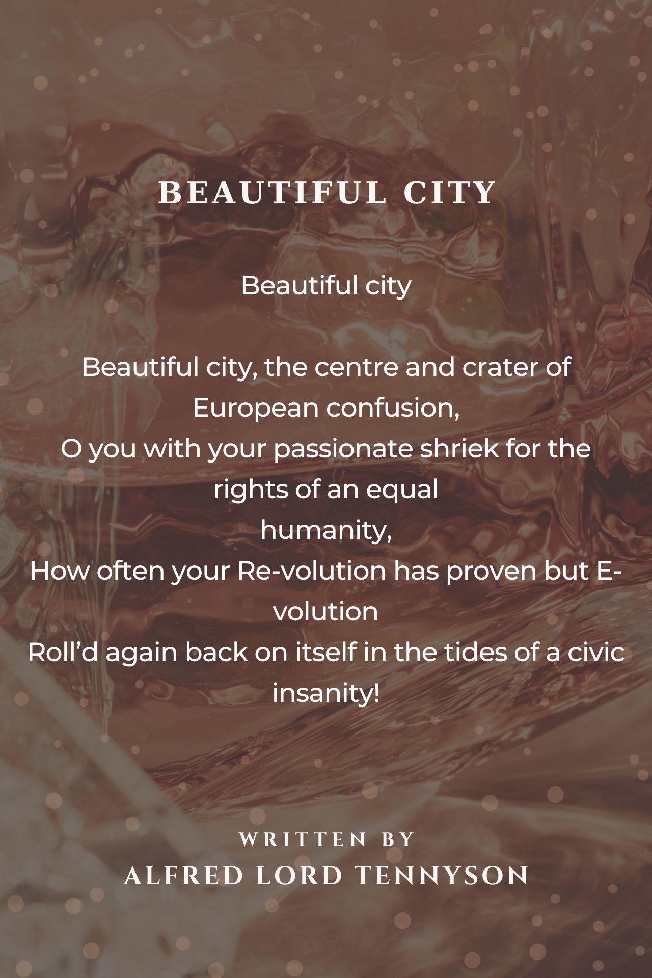 Beautiful city, the centre and crater of European confusion, O you with your passionate shriek for the rights of an equal humanity, beautiful city humanity great expression great 10+++++++++++++++++++++++x10000