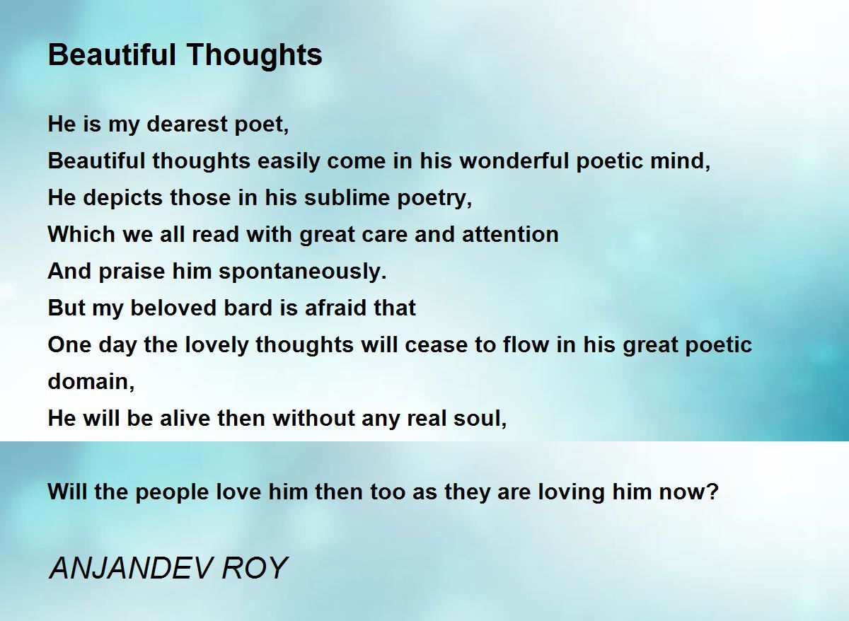 Beautiful thoughts easily come in his wonderful poetic mind,