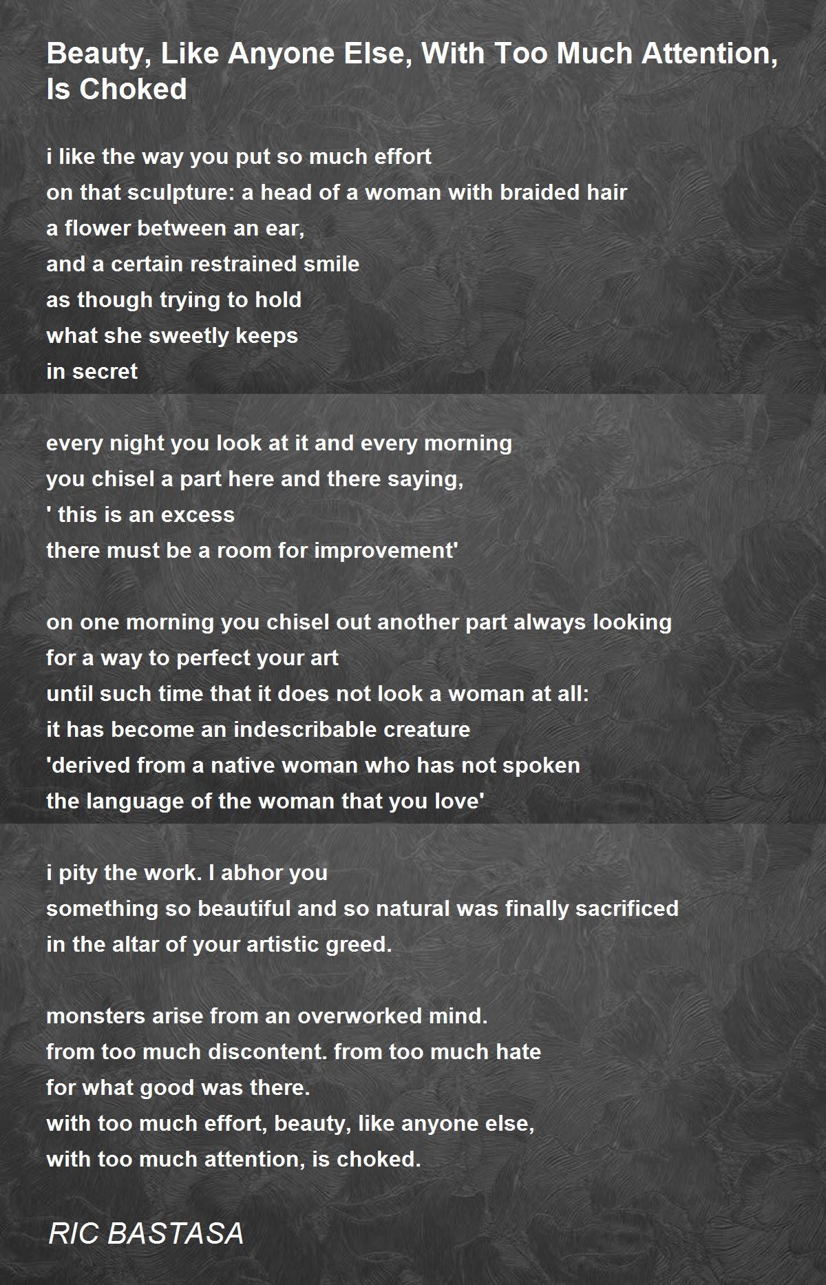 with too much attention, is choked.