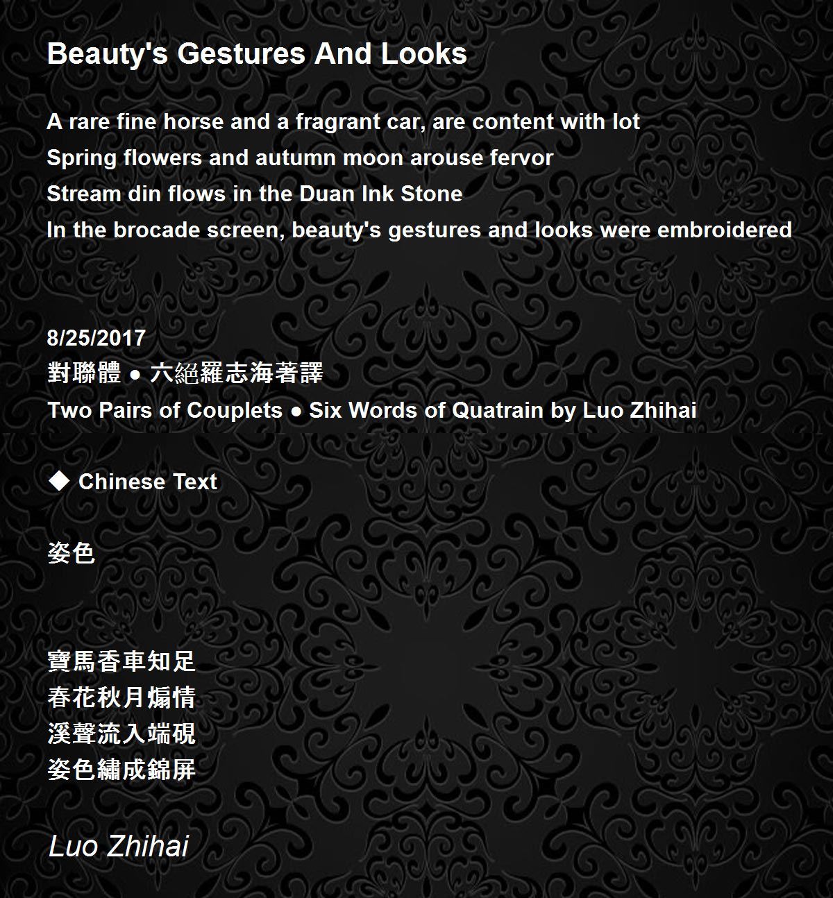 Two Pairs of Couplets ● Six Words of Quatrain by Luo Zhihai