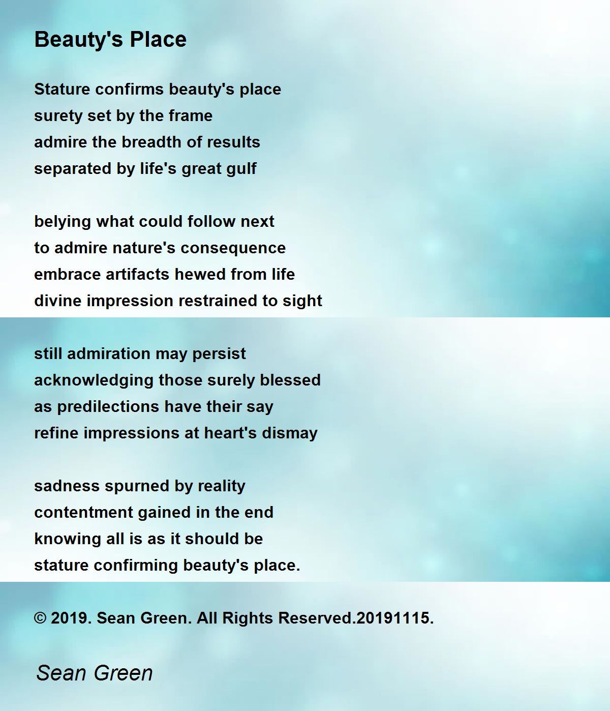 stature confirming beauty's place.
