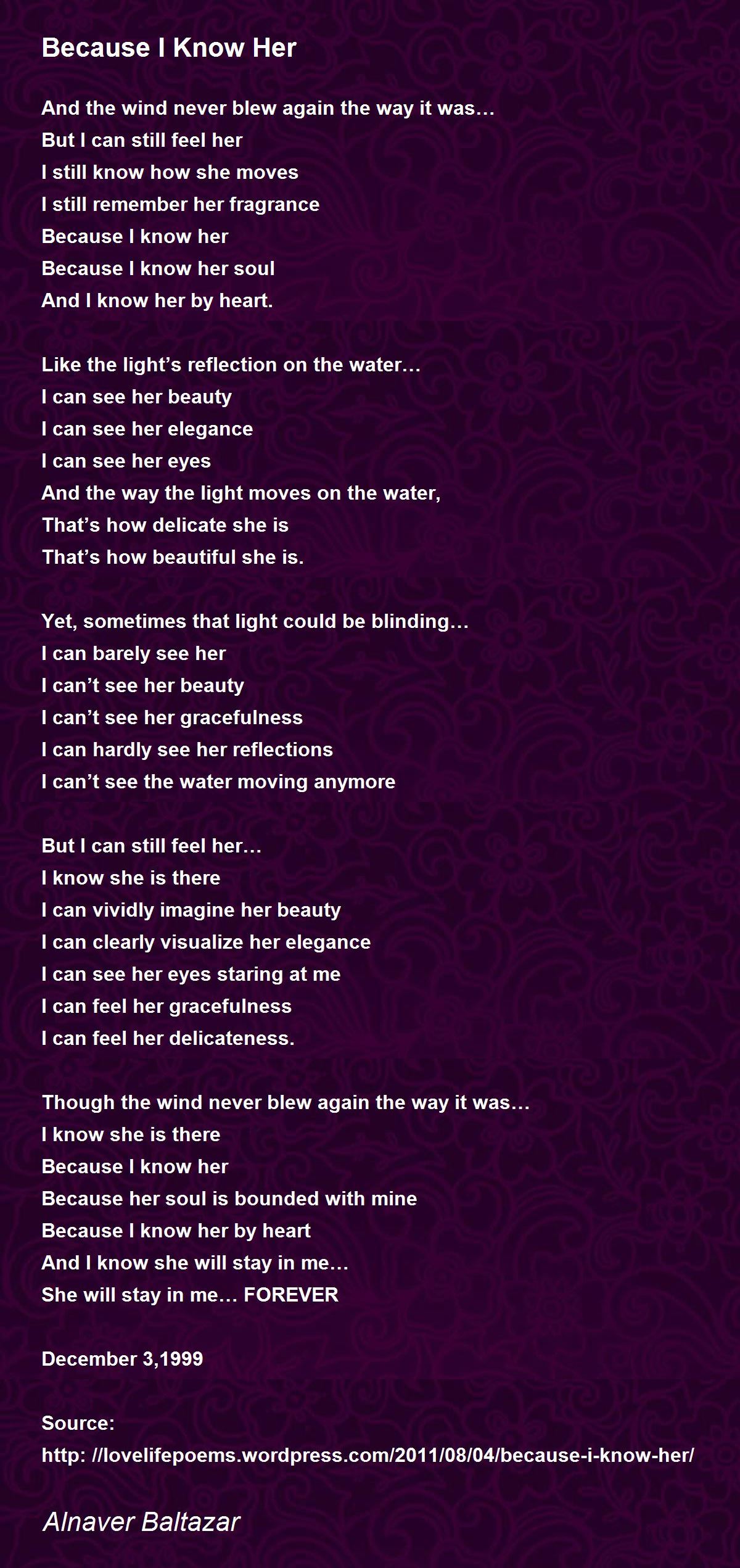 http: //lovelifepoems.wordpress.com/2011/08/04/because-i-know-her/