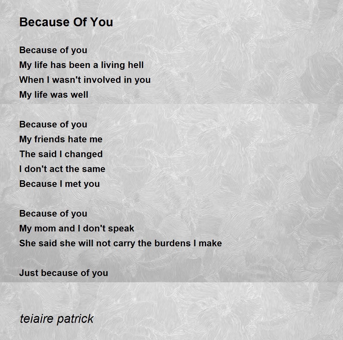 its not just the 'you' in your poem that's responsible for your problems........i guess the real you are part of the reasons for your problems...........think once again nicely written....... ;)