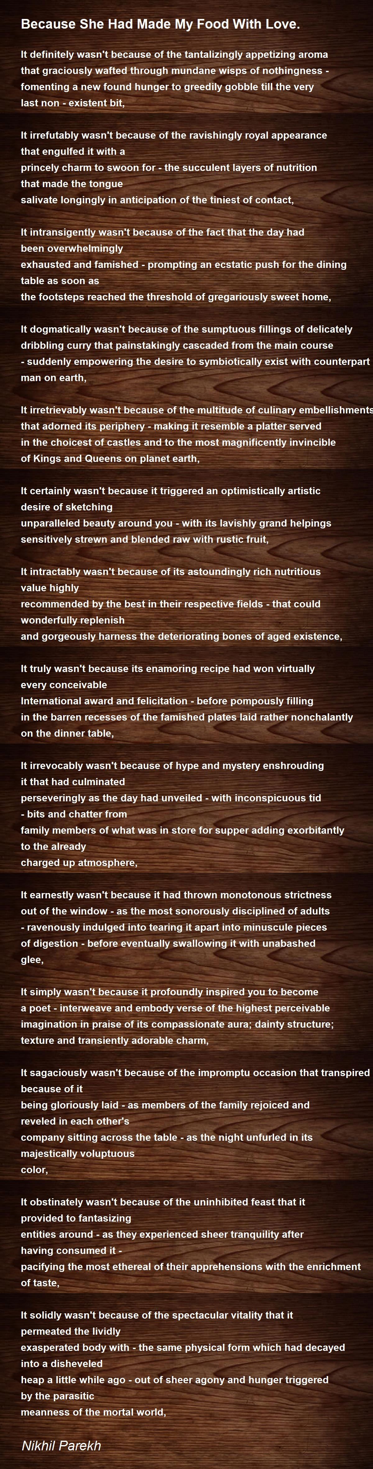 because she had made my food with love.