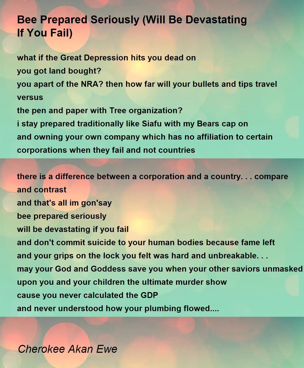 and don't commit suicide to your human bodies because fame left and your grips on the lock you felt was hard and unbreakable...