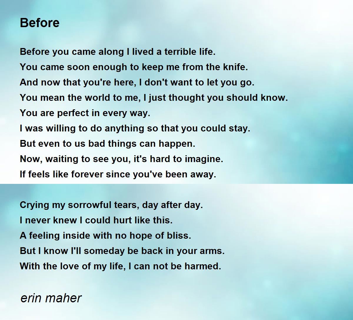 Before you came along I lived a terrible life.