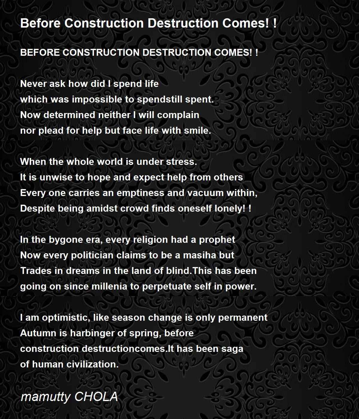 nor plead for help but face life with smile.