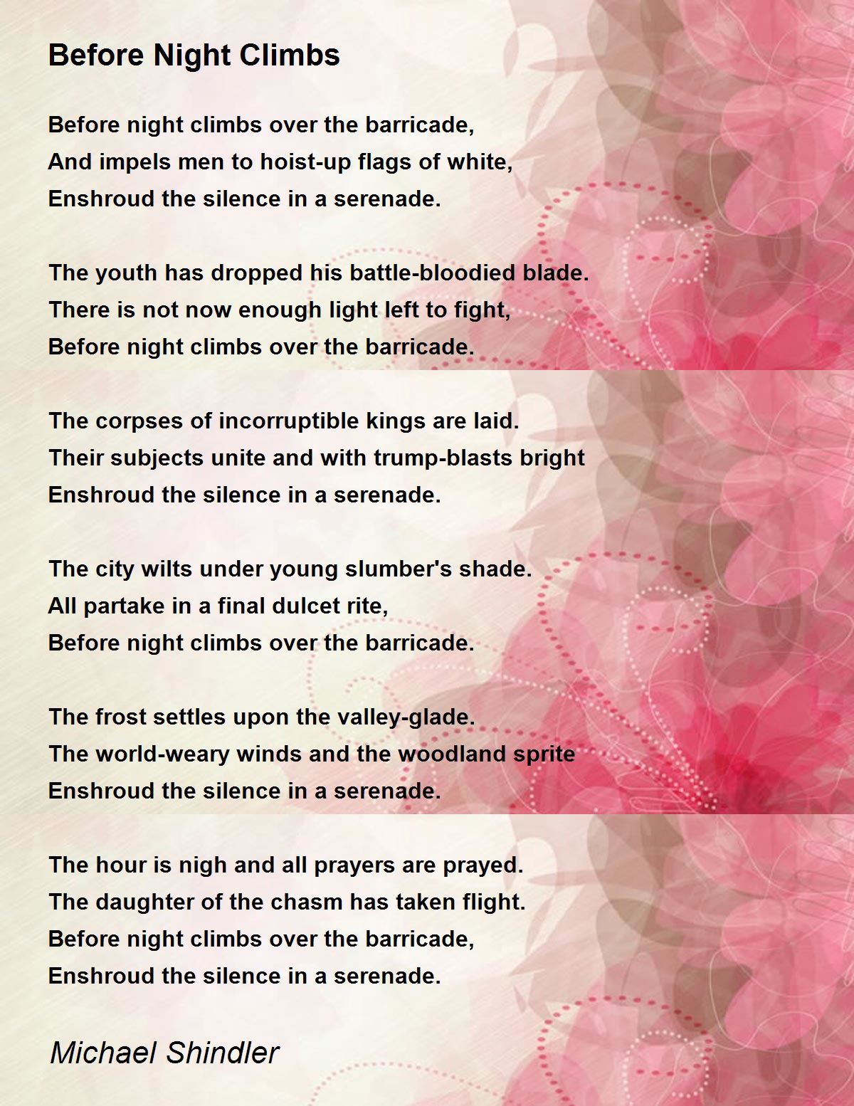 Before night climbs over the barricade.