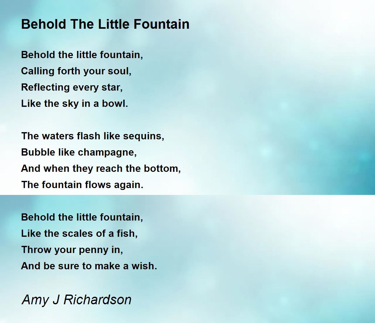 Behold The Little Fountain Poem by Amy J Richardson