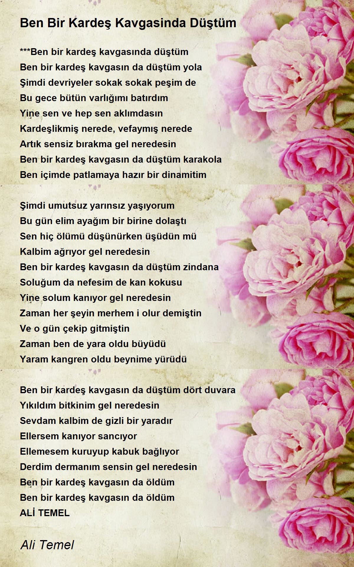 Ben bir kardeş kavgasın da düştüm dört duvara